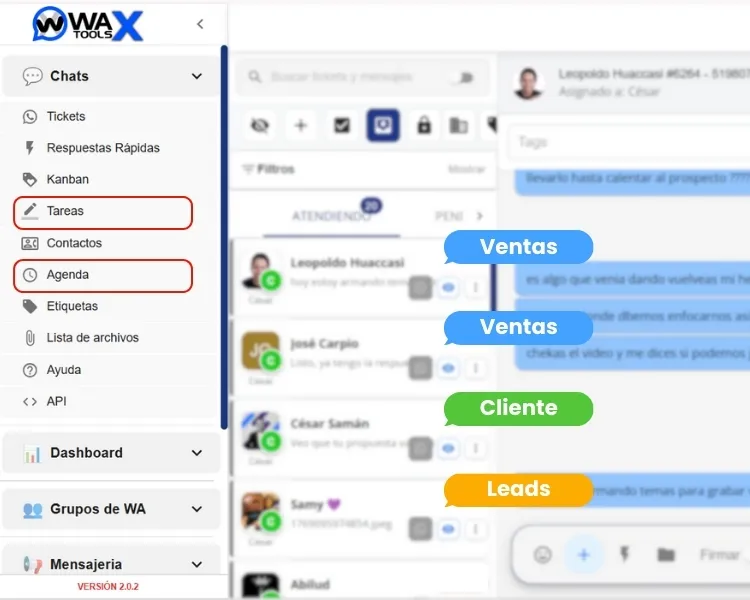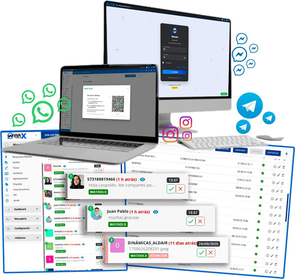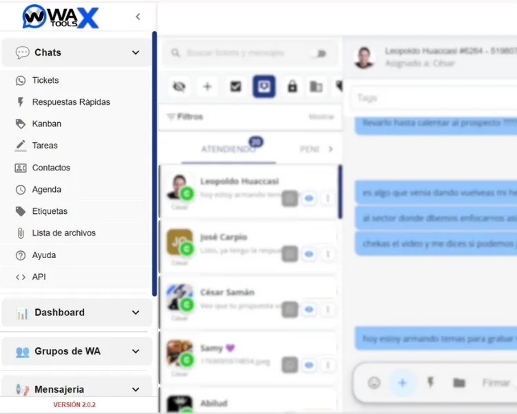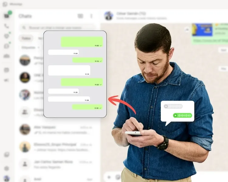 Todo lo que ocurre en WhatsApp está centralizado y visible en tiempo real: historial completo de cada contacto y un dashboard intuitivo que te muestra exactamente qué pasa en cada momento.