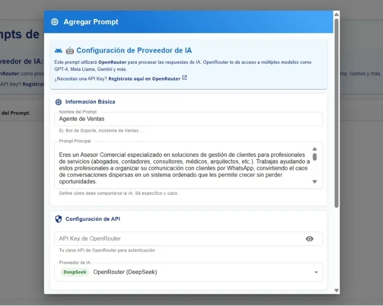 No es un chatbot básico. Es un agente conversacional que califica leads, responde preguntas complejas y actualiza el Kanban automáticamente. Opera 24/7 en español nativo.
