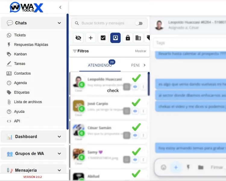 Delegas con total confianza: asignas conversaciones automáticamente o manualmente, transfieres tickets entre agentes, supervisas el rendimiento de cada persona y mantienes el control absoluto.